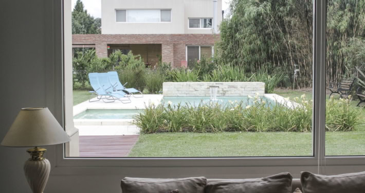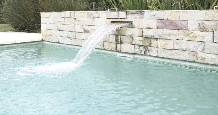 - Muro Cascada a todo lo ancho revestido en piedra natural