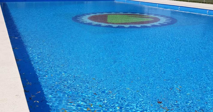 - Logo de petroquímicos en venecitas en 6 metros de diámetro en fondo piscina Principal